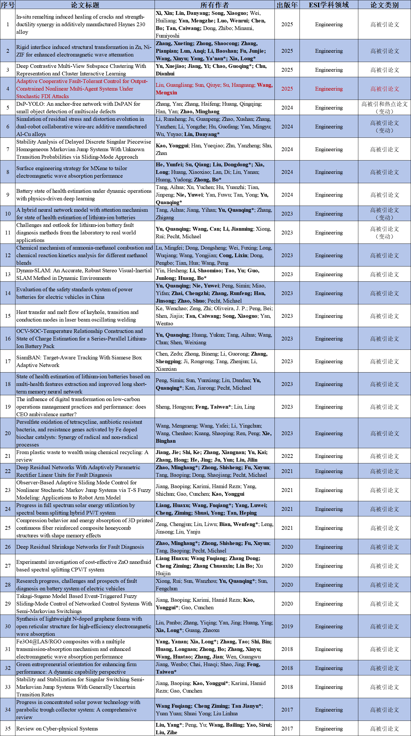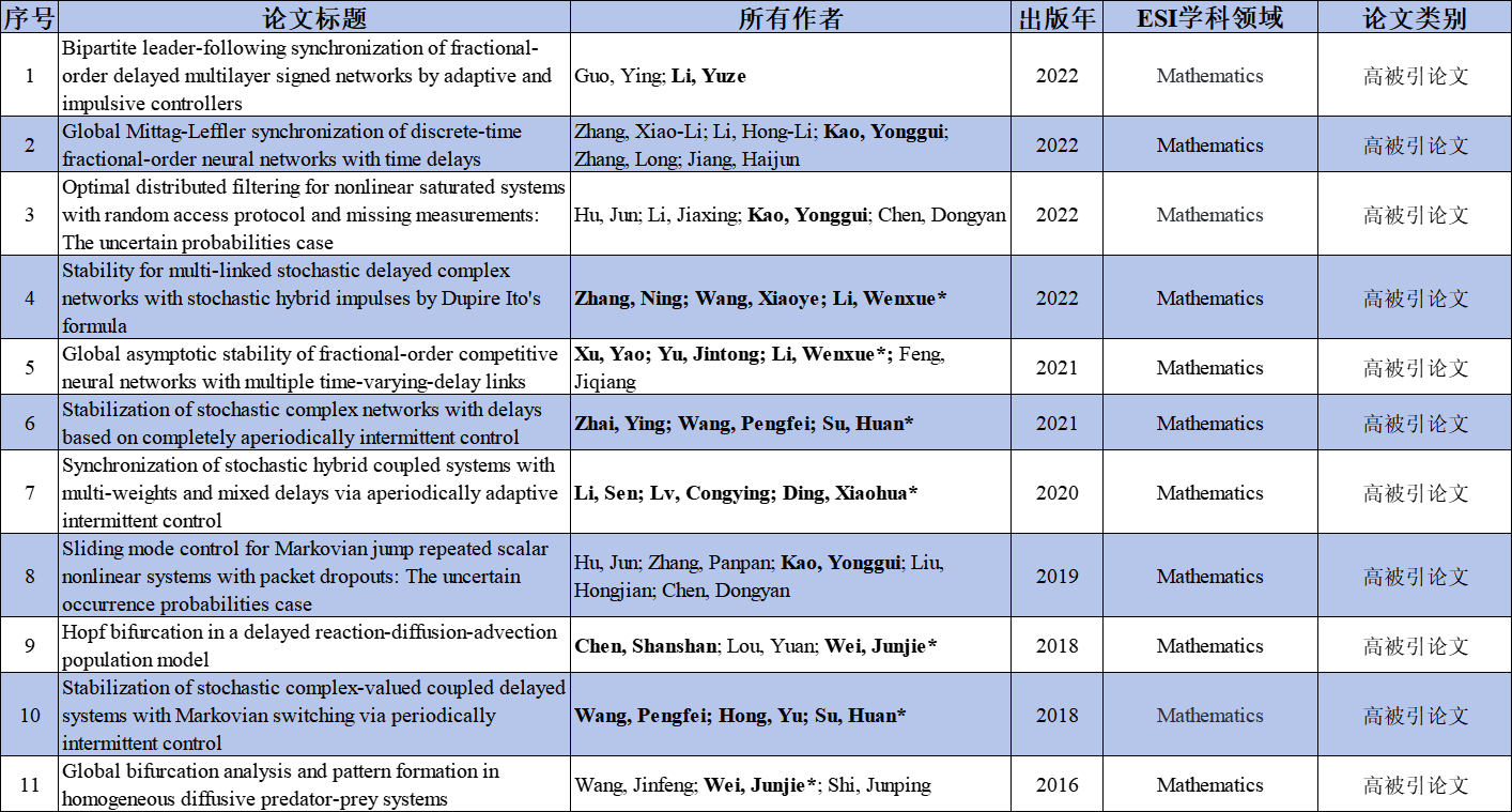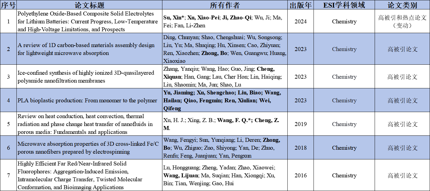 84篇ESI高影响力论文题录信息如下(以投稿标注地址为依据,粗体标识为我校区作者,*为我校区通讯作者(含共同通讯),深红色字体为本期新增论文)