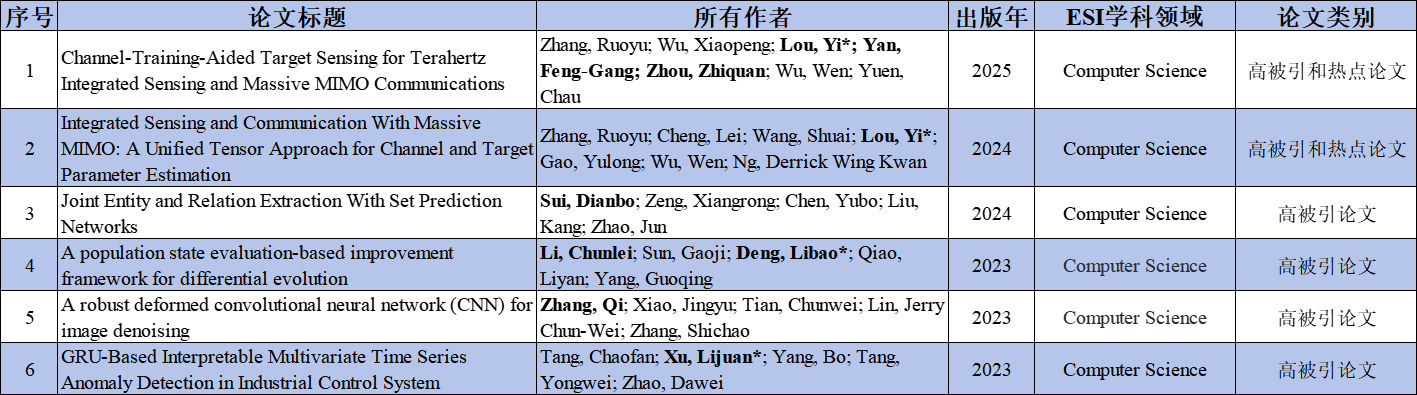 ESI计算机科学学科领域论文
