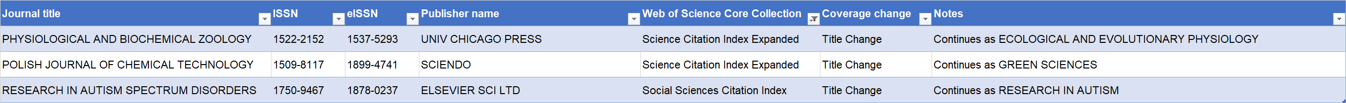 根据10月27日公布的Web of Science™收录主期刊列表(Master Journal List)显示,2025年10月WOS核心合集数据库中有3种SCIE/SSCI期刊更名。