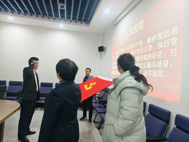 会议开始前,举行了预备党员刘俊杰的宣誓仪式。在全体党员的见证下,刘俊杰面向党旗庄严宣誓。