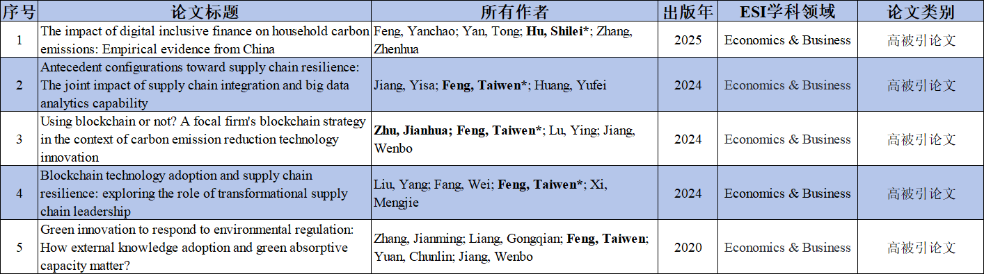 ESI经济与商业学科领域论文