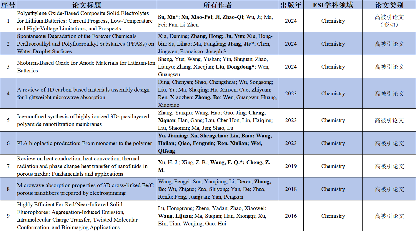 ESI化学学科领域论文
