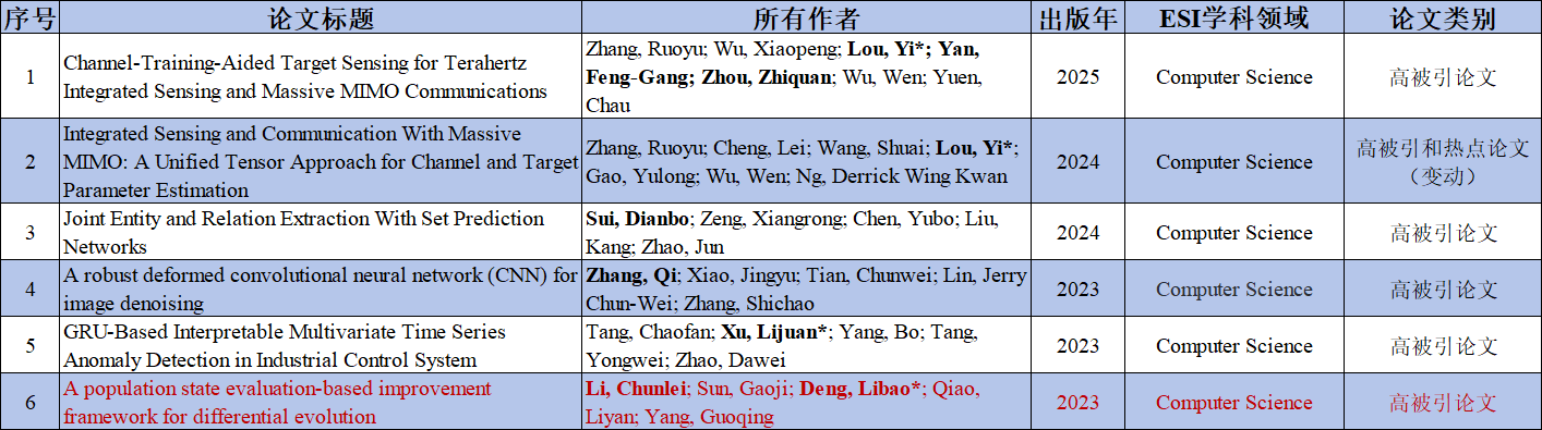 ESI计算机科学学科领域论文