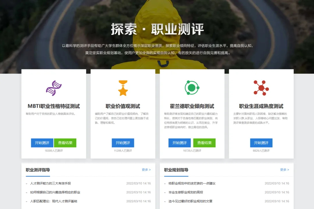 通过科学专业的职业测评工具,帮助你认识自身性格特点、优势特长与兴趣倾向,明确适合的职业方向,让大学规划不再迷茫。