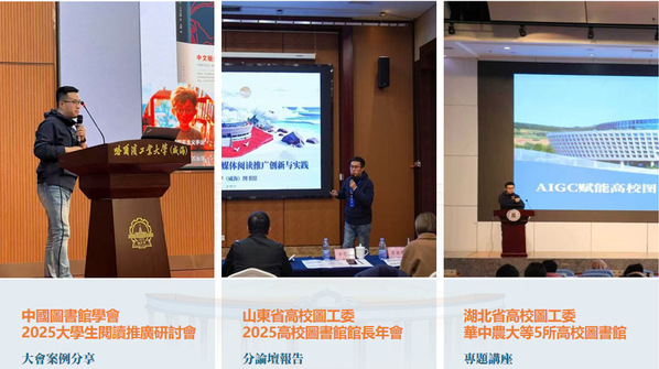 在2025年校区图书馆承办的“全国大学生阅读推广研讨会”上,我馆新媒体运营团队分享的《AIGC赋能高校图书馆新媒体运营》主题成果,凭借成熟可落地的运营模式与亮眼的实践成效,引发业界广泛关注,成为高校图书馆数字化转型的标杆范例。此次会议不仅显著提升我馆在山东省高校图书馆领域的影响力,更让学校在全国高等教育文化服务领域收获高度关注,彰显了优质办学与创新育人的良好行业形象。2025年,团队受邀赴湖北省高校图工委,与驻武汉多所高校图书馆同仁交流经验;同时在山东省高校图书馆馆长年会进行了典型案例分享。