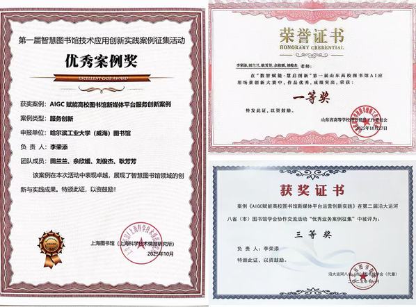 十余年间,我馆新媒体运营成果屡获业界认可,累计斩获中国青年报、中国图书馆学会等国家级奖项及省级学会等各类奖项三十余项,包括全国高校阅读推广案例奖、优秀业务案例奖、AI场景应用大赛一等奖等;相关成果多次被教育部中国大学生在线、黑龙江省共青团、黑龙江省广电等国家级及省级网络媒体转载,为高校图书馆新媒体运营提供了丰富的实践参考,成为学校文化建设与对外宣传的一张靓丽名片。